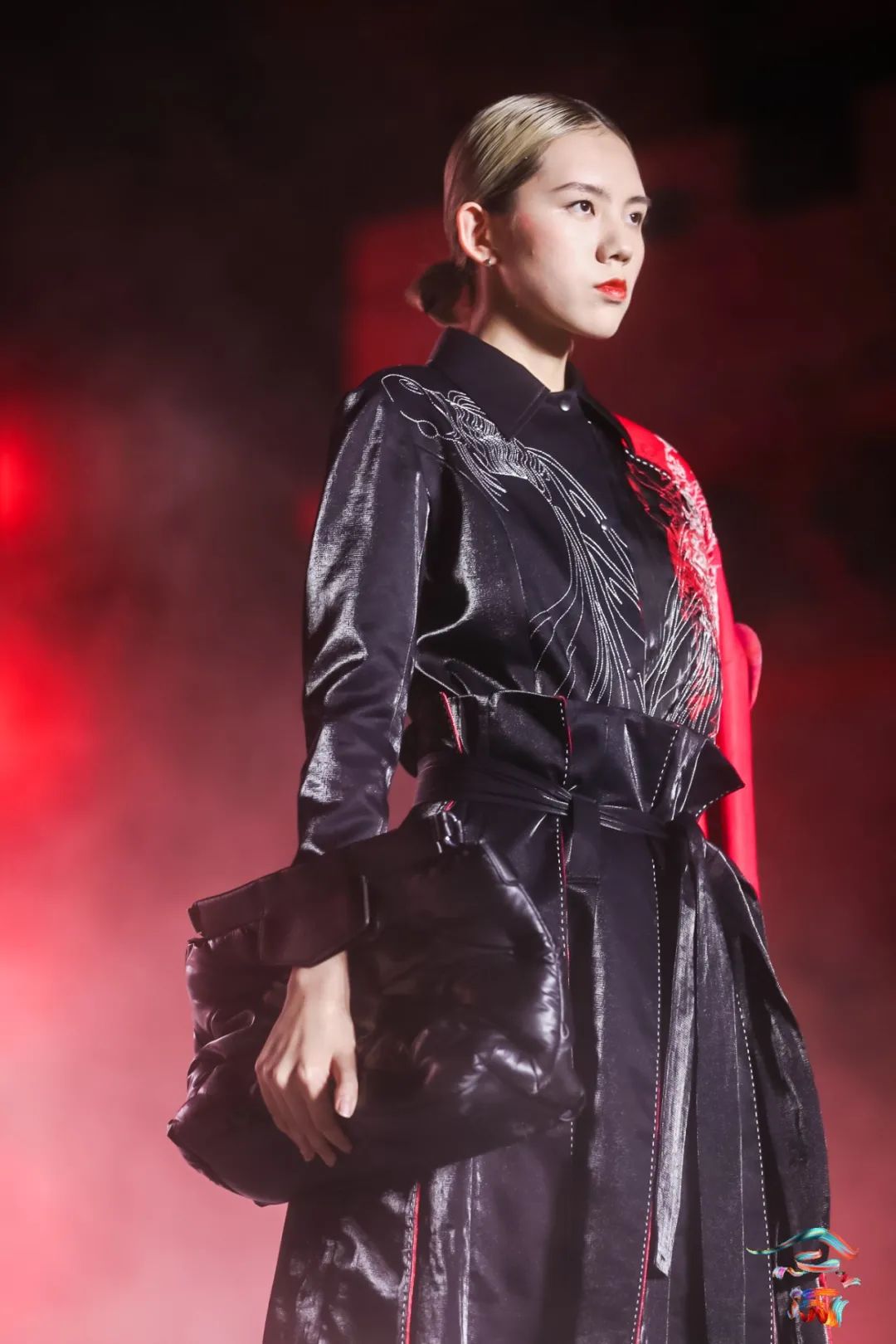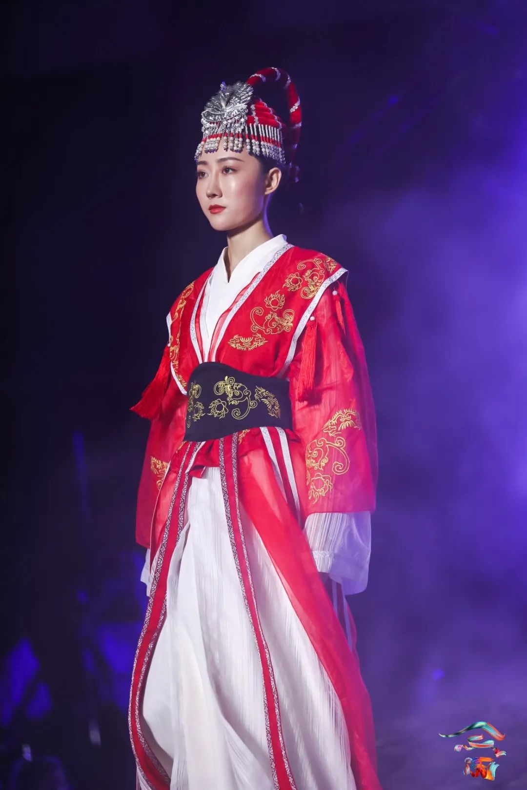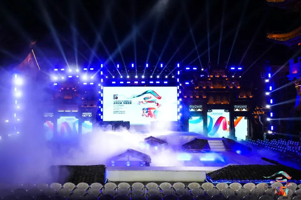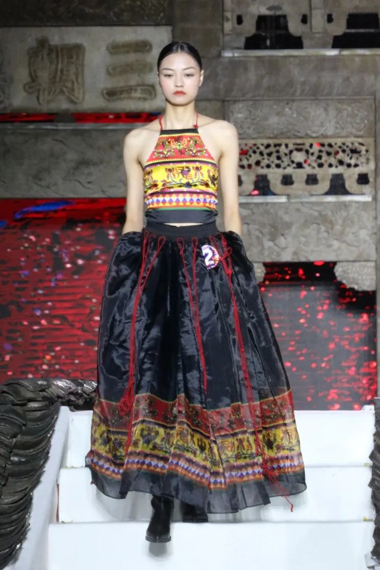 本次展演主题“云中幻城,凤凰霓裳”,是在开放的广场上,由灰色瓦砾和白色云雾组成云海,由原生态畲族民居屋顶瓦片组成座座屋顶,整个场景如同云海漫过屋顶。在缥缈多姿的“云雾”和声光效果中,营造如梦似幻的仙境般的梦幻境界,演员漫步其中,与观众相遇。极具鲜明畲族风俗特色的浸沉式舞台,与观众建立情感共鸣基础,突破传统舞台设计内容同质化严重的困局,使更多人认识畲族,尽情展示畲族服饰的魅力和底蕴,缔造畲族文化的盛宴。