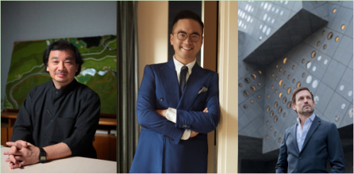 郑志刚 (中) 凝聚国际顶级建筑师坂茂 (左)及奥雷·舍人 (右),打造杭州K11全新文化艺术地标