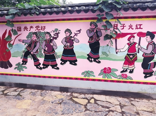 “我的中国梦”“共产党好、日子红火”“民族团结是发展进步的基石”……结合了党的政策和彝族文化元素的宣传图画展现在了群众眼前……