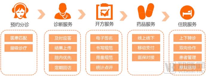 《健康中国2030规划纲要》颁布标志着我国医疗向健康的转变。当前医疗机构格局依然以治疗为主,对于慢性病、常见病的预防、康复以及健康管理等方面依然存在不足。互联网医院是保证供给侧结构性改革的一个重要举措,医疗机构需要借助互联网这个工具,与药品供应等第三方服务商及其药店合作实现药品配送,与支付机构连接实现智能化线上支付,与康复机构连接解决患者术后康复问题,同时引入可穿戴设备对居民进行健康监控与管理。互联网平台通过这些新的资源配置方式能够实现更优化更智慧的会诊流程和服务模式。