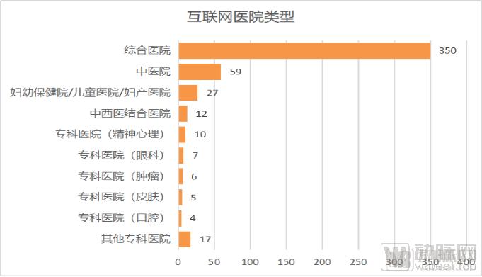 从目前互联网医院类型来看,综合医院和中医院占主流,专科医院类型多样。综合医院科室齐全,能满足患者多种就诊需求。中医院虽然在线上无法把脉,同样可以开出在线处方。妇幼保健院、儿童医院和妇产医院也是占比较高的医院类型。其他的专科医院中,以慢病或口腔、眼科这类消费需求较强的专科为主,这些医院能够满足患者医疗、健康管理、消费等的多层次需求。