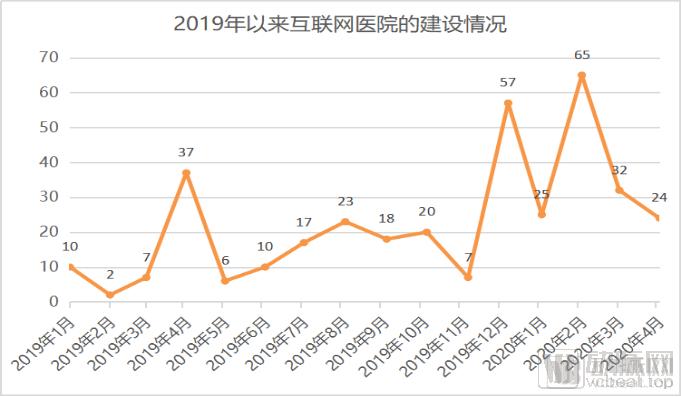 1. 互联网医院作为医疗健康产业的新物种,刚经历新一轮的建设高峰,截至2020年4月30日,全国已成立 497家互联网医院;
