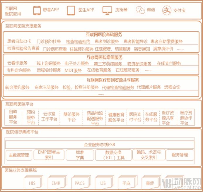 互联网医院系统包括应用层、支撑层以及平台层三个组成部分。