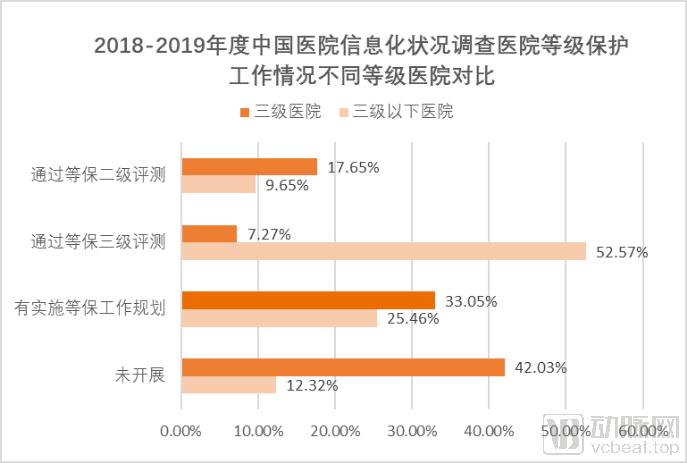 3. 医疗机构网络安全建设落实情况依然不容乐观。三级医院通过等级保护三级测评的仅有52.57%,三级以下医院仅有24.92%通过等级保护测评;