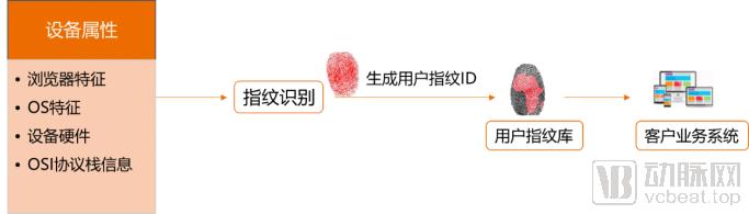 为更精准的识别互联网用户,防止误伤,引入设备指纹技术。设备指纹采用在网站端集成JS脚本来采集终端设备的硬件、网络、浏览器等非敏感的设备特征信息,然后提交的服务端,通过特定的hash算法为每一个终端设备生成一个全球唯一的设备指纹标识写入用户cookie,伴随在整个会话生命周期,进而实现对访客的服务鉴权、行为跟踪等。