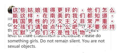 尤其韩国男性必须强制服兵役,一种男性间的普遍情绪是:女人一不用服兵役,二不用赚钱养家,还要跟我们在工作上竞争。