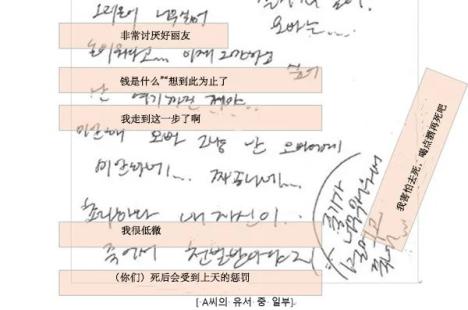不久前,韩国好丽友食品一名22岁的女职工自杀身亡,遗书中包括“非常讨厌好丽友”“钱是什么”“想到此为止了”“我走到这一步了啊”“别再折磨我了”等内容,另外还提到领导的名字、职务等信息。
