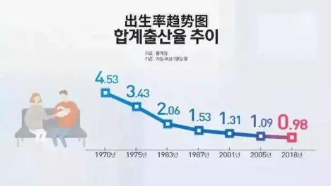 韩国的生育率自从上世纪70年代起连续走低,2018年甚至获得全球生育率最低国家的“光荣称号”。