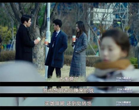 最后金智英变成了全职妈妈,当她带着两岁多的女儿去买咖啡,女儿不小心碰到咖啡,一旁的男士嘲笑金智英为“妈虫”。