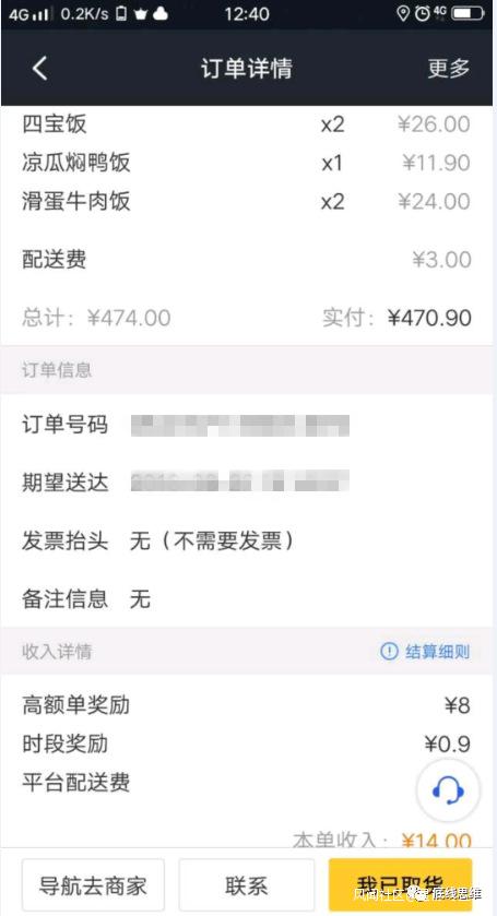 上图就是大单子的典型,而平台不会因为客单价高而给商家多一点时间来备餐,也不会给骑手太多的配送费,至于这么多东西骑手的箱子能不能装得完,平台也不会考虑进去的。有人会说:高额单奖励8元,不是给骑手加钱了吗?如果算上出餐速度,有经验的骑手宁愿接两张小单的顺路单,也不愿意接这种单子。