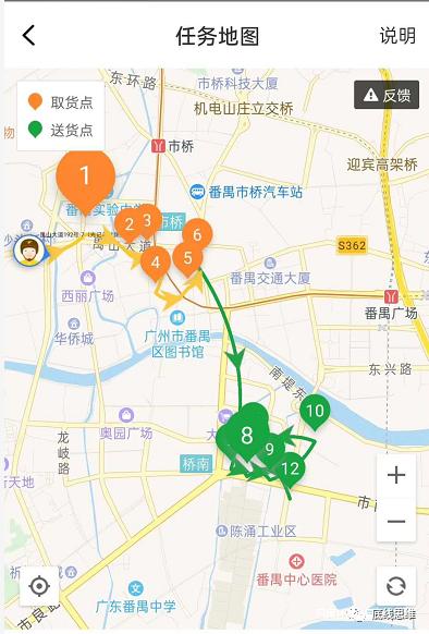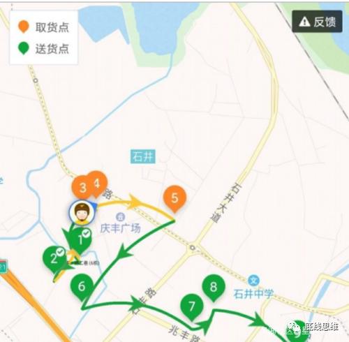 后来自己回想起来,做了个小总结:如果从尽快熟悉路线的角度来说,应该是让自己尽可能的同时接更多的单,让自己尽快上手。打个比方,如果现在只是一单一单地接,下次可以接三单,再下次可以接五单。刚开始可能会有一单迟到而扣钱,但是可以很快地熟悉商家、路线、客户的难易程度(客户在几楼,是不是不用上楼等因素都有可能影响配送的先后)等,我个人认为,如果不是追求好评的角度,我的能力,应该可以同时接8单。