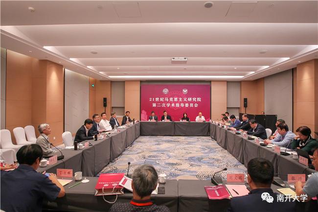 会议期间还召开了南开大学·中国社会科学院大学21世纪马克思主义研究院(以下简称研究院)第二次学术指导委员会,主任王伟光、常务副主任杨庆山,副主任王新生出席。王伟光就研究院成立一年来的工作进展作报告,介绍了研究院构建“一三七十”发展规划、进行全方位制度建设、以人才聚合与培养为落脚点、以国家战略需求为导向、全面加强合作交流等五方面具体工作,以及今后以重大协同创新任务为牵引,以体制机制改革为保障,汇聚优秀创新团队,聚集各类型、各层次的创新资源,发挥学术阵地作用,推动研究院真正建设成为21世纪马克思主义研究高地的下一步目标与规划。与会委员就研究院今后发展建言献策。 南开大学·中国社会科学院大学21世纪马克思主义研究院是由南开大学与中国社会科学院大学联合成立并共同建设的马克思主义理论研究高端平台,着眼于当代中国马克思主义学科体系、学术体系和话语体系构建,立足中国、面向世界、瞄准学科前沿和解决重大问题,专注于21世纪马克思主义理论研究、马克思主义研究人才培养及马克思主义理论专家型队伍建设,致力于当代马克思主义研究社会服务能力提升和领域内交流合作,旨在打造在国内外具有广泛影响力的21世纪中国马克思主义学术研究重镇、拔尖人才基地和阐释传播平台。