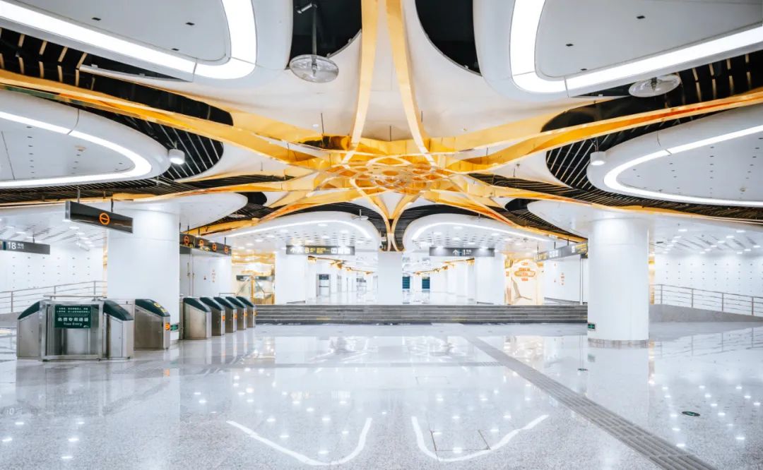18号线首开段与1号线共有5座换乘站,乘客可通过站内“共走廊”通道进行无缝换乘,同时车站还配置了“共走廊”换乘指导手册,供市民乘客免费领取,市民乘客可根据自身需求选择出行路径。