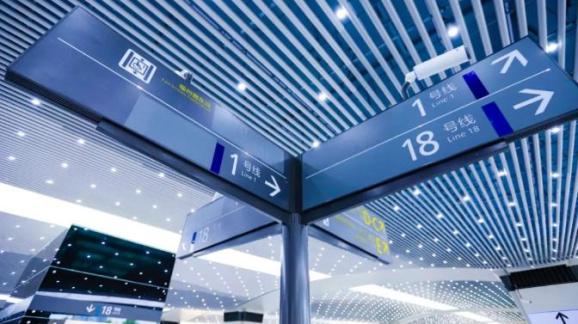 火车南站7号线站厅中部、18号线换乘通道等位置增设了三块综合信息屏,该综合显示屏可显示导向信息、列车终点站及到站时间信息,乘客可根据显示信息合理安排出行计划。