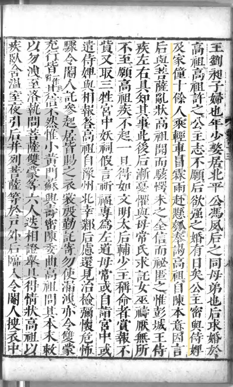 这里存在着史料释读的问题。上面所引《皇后传》数语,中华书局标点本是这样标点的:“公主志不愿,后欲强之。婚有日矣,公主密与侍婢及家僮十余人,乘轻车,冒霖雨,赴悬瓠奉谒高祖。”中华本《北史》卷一三《后妃传》同。按这个标点,公主与冯夙成婚在前,前往悬瓠揭发冯皇后在后。可是刚刚说了“后欲强之”,怎么突然就“婚有日矣”?如果已经成婚,为什么不见有离婚的记载?史料提到公主,都说是“刘昶子妇”,未见有提及冯夙者。所以我认为中华本的标点是错误的。《资治通鉴》卷一四二载此事,径作“公主不愿,后强之。公主密与家僮冒雨诣悬瓠”云云,显然并不认为曾经成婚。
