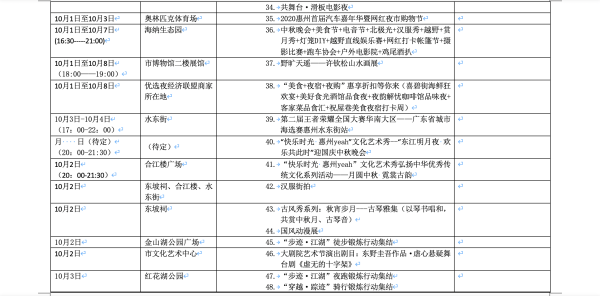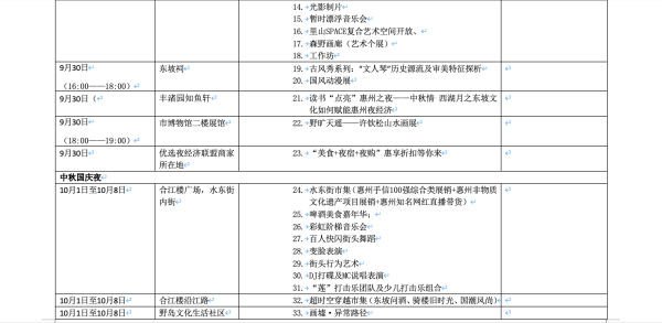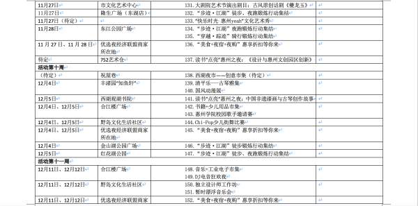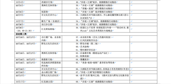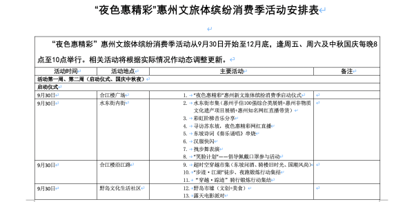 “夜色惠精彩”惠州文旅体缤纷消费季活动安排表