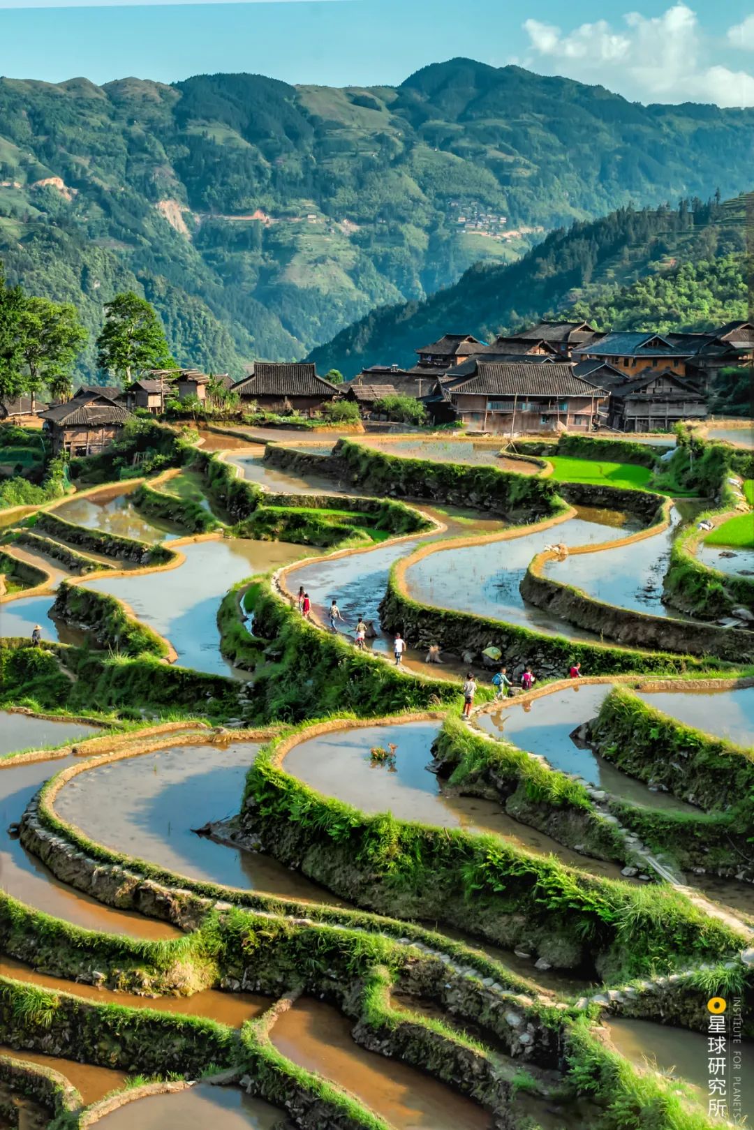 (贵州加旁梯田上,正在放学回家的孩子们,摄影师@老西关)