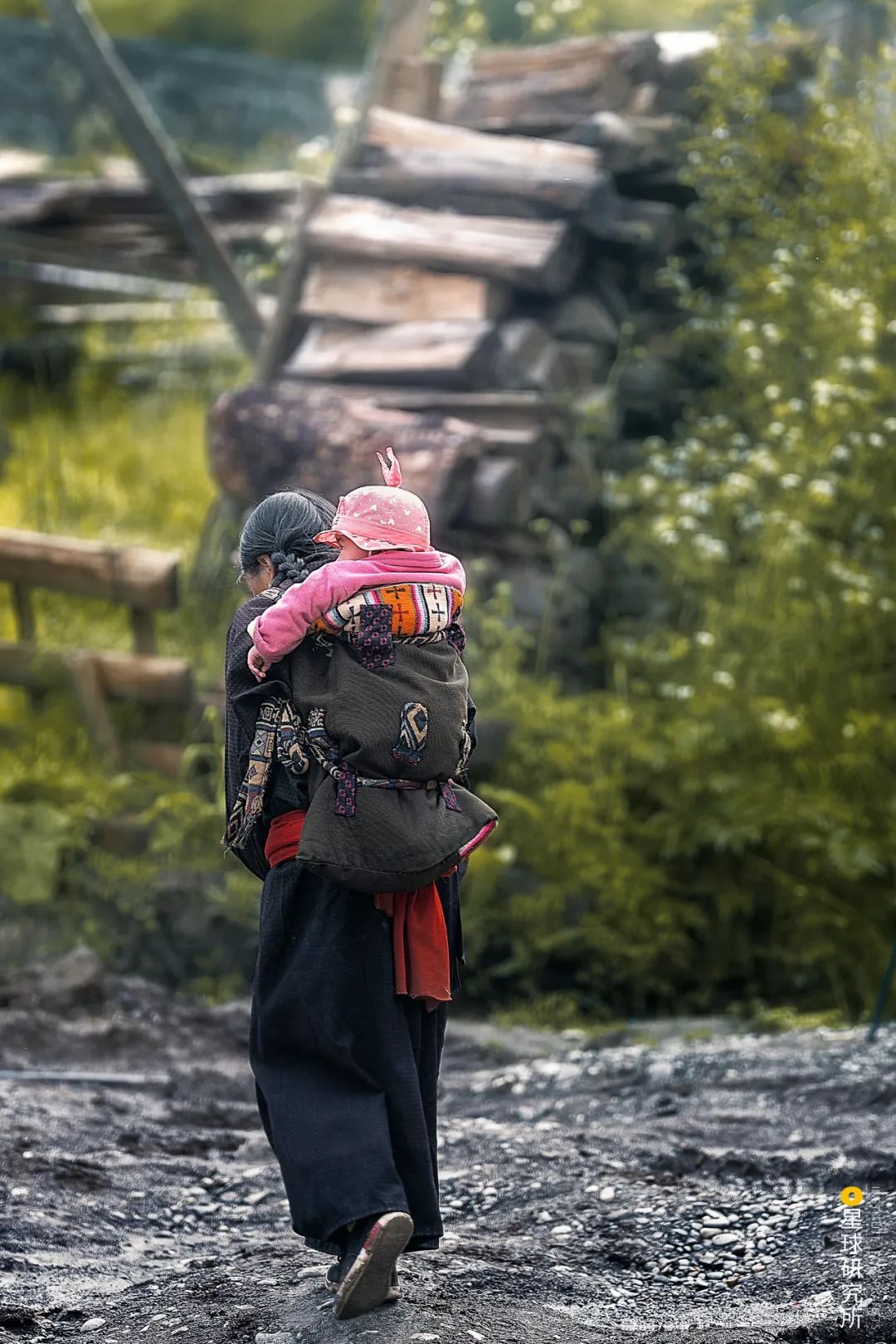 (甘肃省甘南藏族自治州扎尕那,背着孩子的老人,摄影师@大力水手)