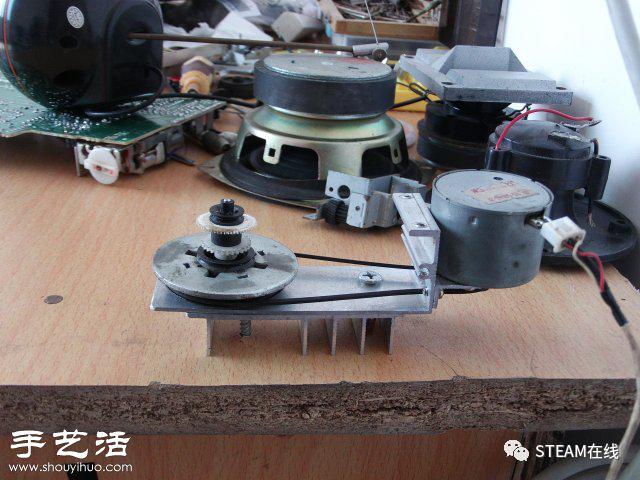 磁带机摘下的马达,皮带和一些转轮,马达带动转轮做一次减速。