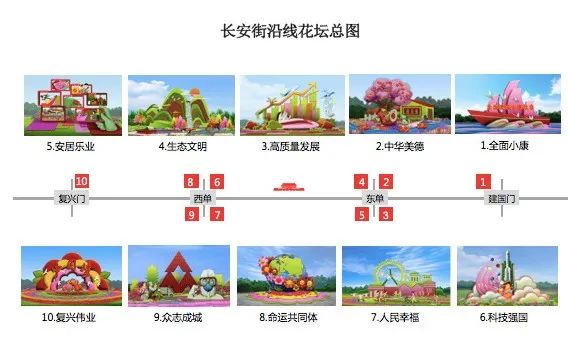 西单东南角打造“人民幸福”主题花坛,花坛顶高9.5米,展示全国人民幸福生活的美好景象。