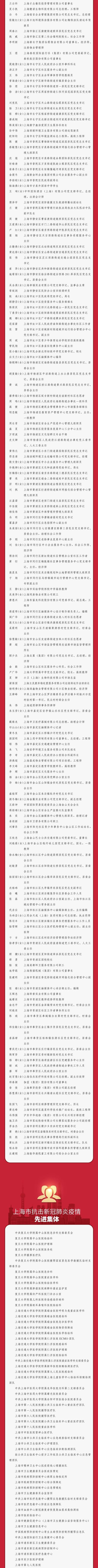 上海市抗击新冠肺炎疫情先进集体和个人全名单