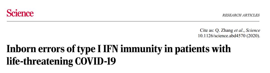 1.Qian Zhang et al. Inborn errors of type I IFN immunity in patients with life-threatening COVID-19. Science, 2020, doi:10.1126/science.abd4570.