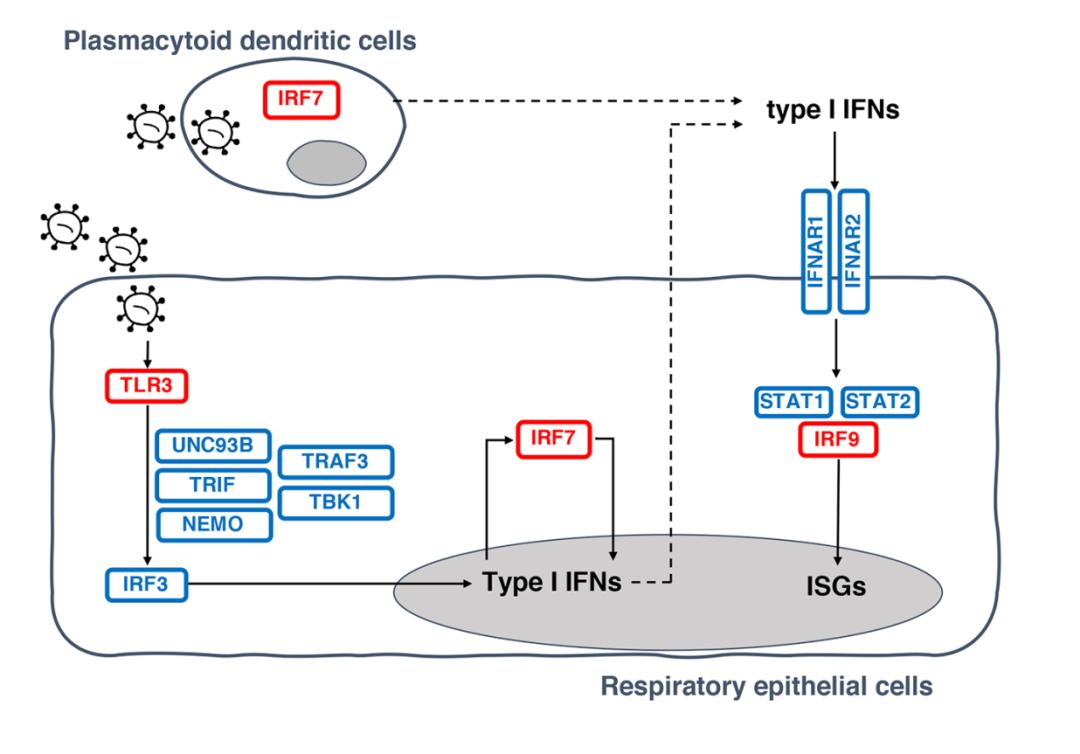 与534名无症状或轻症感染者相比,659名重症COVID-19患者中发现了13个基因座位的功能缺失,这些基因座位控制着I型干扰素信号相关基因TLR3-和IRF7-。