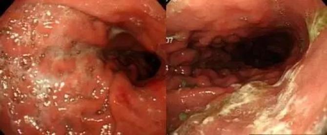 2、与普通胃镜相比,术前准备更充分。普通胃镜检查,虽然患者是空腹状态,但胃肠道内有较多粘液及泡沫不能完全消除,影响内镜下观察效果。胃镜精查检查前15-30分钟,给予患者黏液溶解剂及祛泡剂以完全清除上消化道内黏液与气泡,有效改善视野清晰度,大大提高微小病变的检出率,见图。