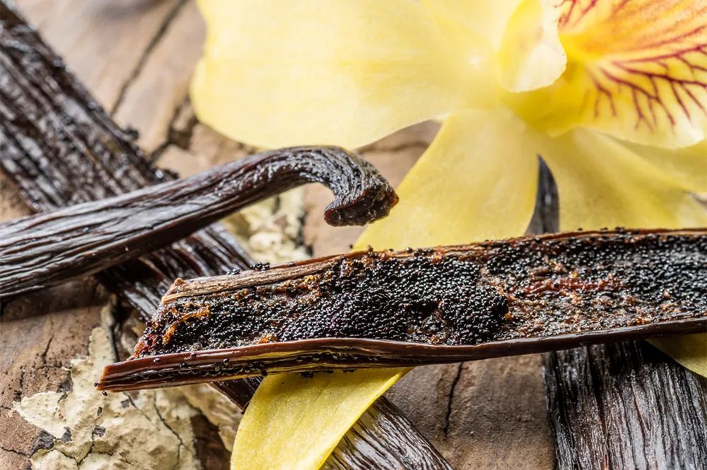 新鲜的“豆荚”并没有香气,需等到完全成熟,果色由青转黑,开裂露出黑色细小的种子,果肉中的香兰素葡萄糖苷在酶的催生下生成多种酚醛类化合物,才有了香气。其中的“香兰素”(Vanillin)是“香草味”的主要来源,高品质的豆荚甚至能在表面看到香兰素的白色结晶。