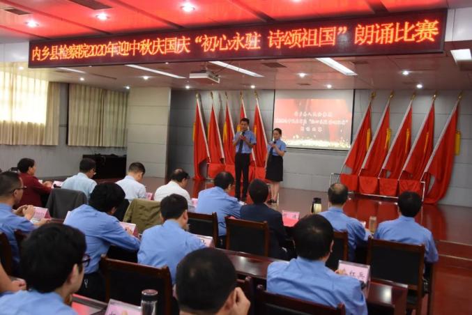 “我深深地爱着我的祖国,黄色的皮肤印着祖先留下的颜色,我深深地爱着我的祖国.黑色的眼睛流露着谦逊的笑窝。。。。。。”声声诵读中,9月29日下午,内乡县检察院2020年迎中秋庆国庆“初心永驻 诗颂祖国”朗诵比赛拉开序幕。