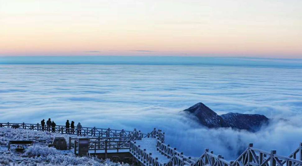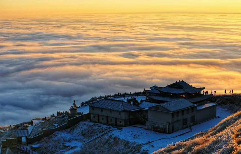 下了中庵索道后,有两条路线可以选择,一条是吊马桩方向,一条是金顶二级索道方向,建议上山沿金顶二级索道方向上山,登顶会比较快一下,大概2.5小时左右可以到达金顶,正好可以赶上晚霞。