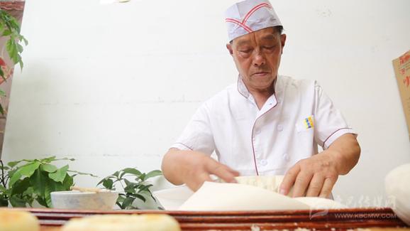 具体制作步骤分为做馅、起酥、做点心皮、制作酥皮、揉搓成坯、烤制等六道工序。其最具特色的“酥皮”,烹制技艺尤为精细,需经起酥、制皮、制酥皮多个环节,在制作中,首先用精制面粉加熬制好的猪油适合比例混合后反复揉搓,并制成长方形面团备用;随后用面粉加猪油,加入沸水晾晒至稍低温度时反复鞣制一个小时,直到拉扯面团不粘手且发出清脆的响声;最后还要将醒发的面团分为五钱重,包裹三钱的“起酥”,擀至长条形,然后裹成圆柱形,左右对折,一层层折叠、压紧,再舒展。这样重复几次,能形成几十层,酥皮薄如蝉翼,沾水即化。