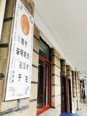 这里原是一所学校,走在这里,看着这联通的“教室”布局,墙上粘贴的励志名言,朗朗的读书声仿佛还在空气中回荡。