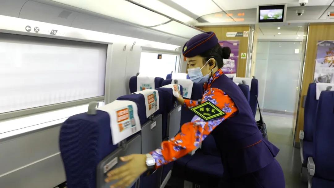 列车上,包继静最操心的还是疫情防控。“我们周口线路折返车次很多,每一次终到始发,都要对车厢进行全面消毒。运行途中我们也会及时提醒旅客带好口罩,绝不能掉以轻心。”她说。