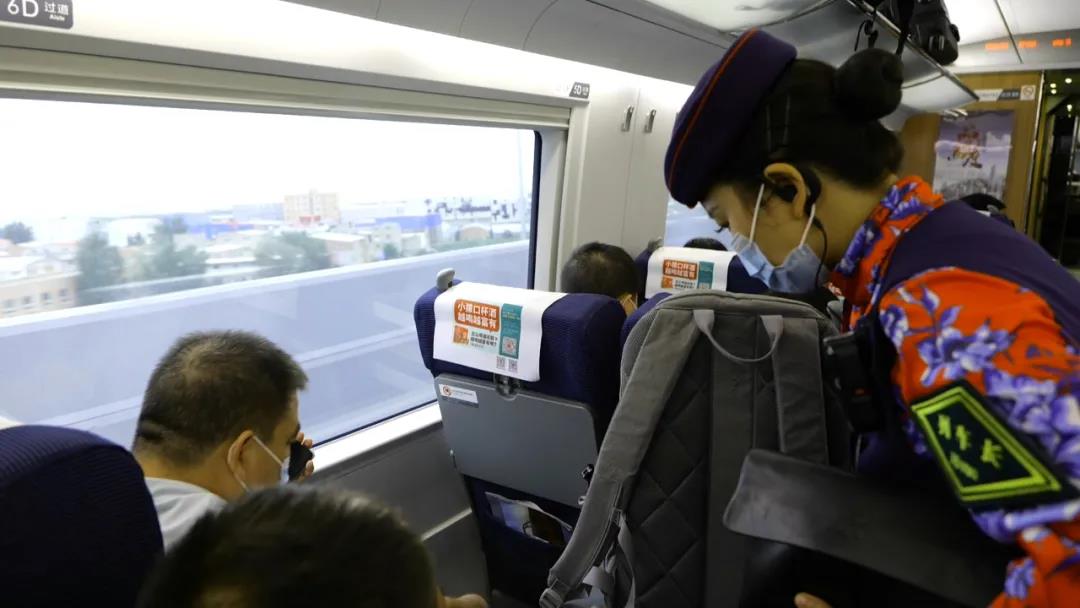 疫情期间,徒步25公里上班的列车长包继静,你还记得吗?她值乘的列车奔驰在郑阜高铁上,往返于郑州和周口之间。郑阜高铁于2019年12月1日开通运营,此前受疫情影响,并未迎接过真正意义上的“大客流”。这个中秋十一黄金周,是郑阜高铁开通后的第一个“双节大考”,包继静会如何应对呢?这个假期对很多人来说,都是“史上最长假期”,但对于郑州客运段高铁一队周口五组的列车长包继静来说并非如此。10月3日,小编在G6631次列车上见到了她,她正忙着巡视车厢,顾不上与小编过多交谈:“旅客需要休息的时候,往往是我们最忙的时候,习惯了!”