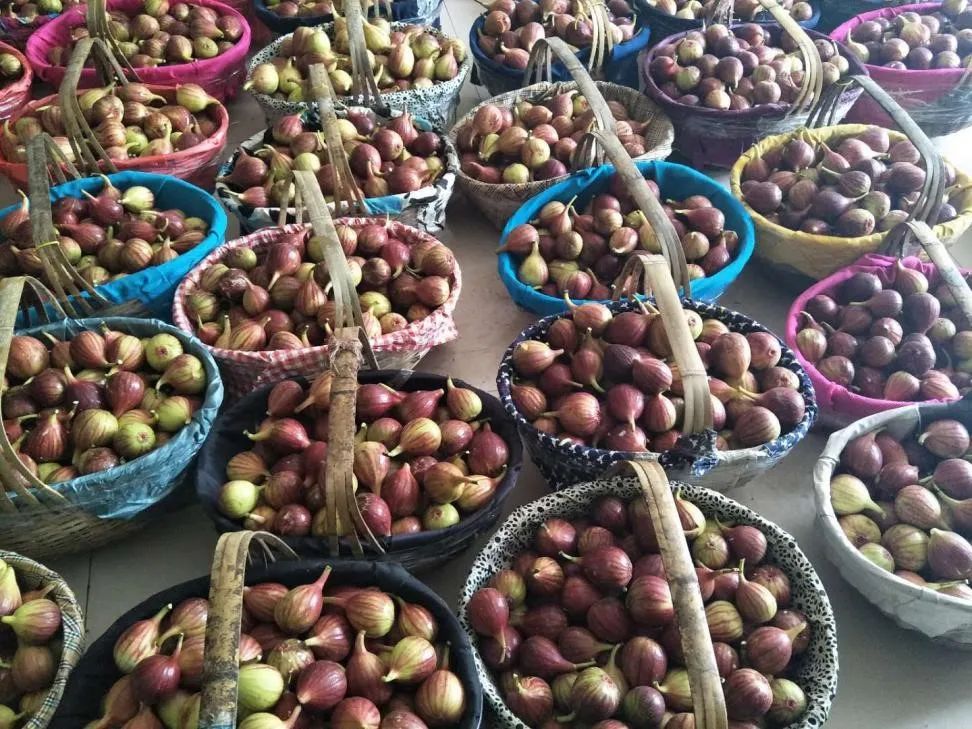 无花果现摘鲜食别有趣味和风味。无花果其果呈球根状,尾部有一小孔,像个小气球,煞是可爱;其树繁茂,姿态优雅,令人赏心悦目。