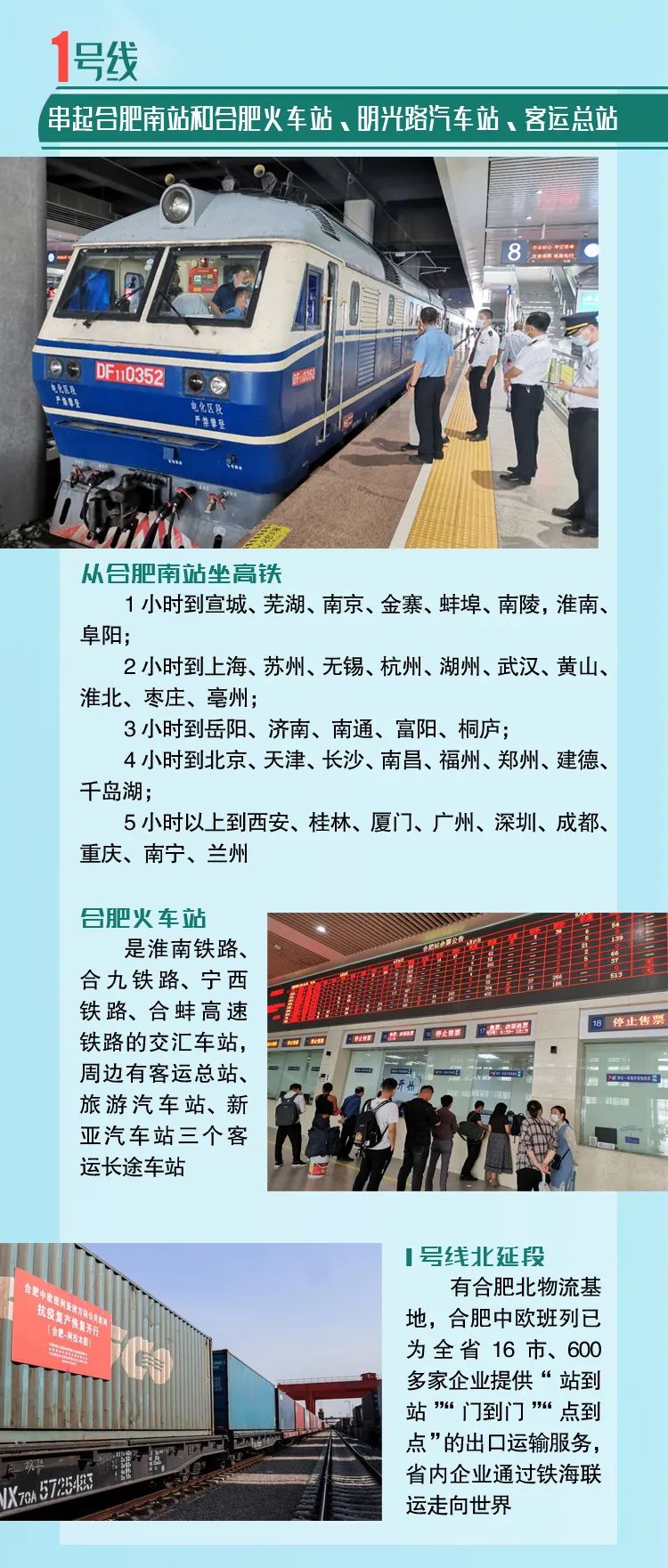 1号线串联了合肥南站和合肥火车站、明光路汽车站、客运总站;