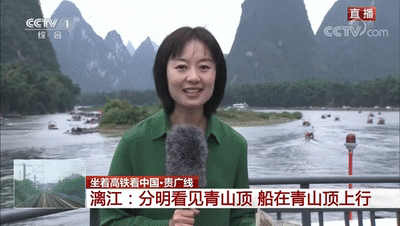 这里也是电影《刘三姐》的拍摄地。游船上,刘三姐第五代扮演者王予嘉演唱了《高铁开进壮乡来》。这首歌的词作者田湘也来到现场,作为铁路人,他见证了广西铁路从绿皮车到高铁的快速发展,他用手中的笔为广西、为高铁、为这个伟大的时代创作了这首歌。