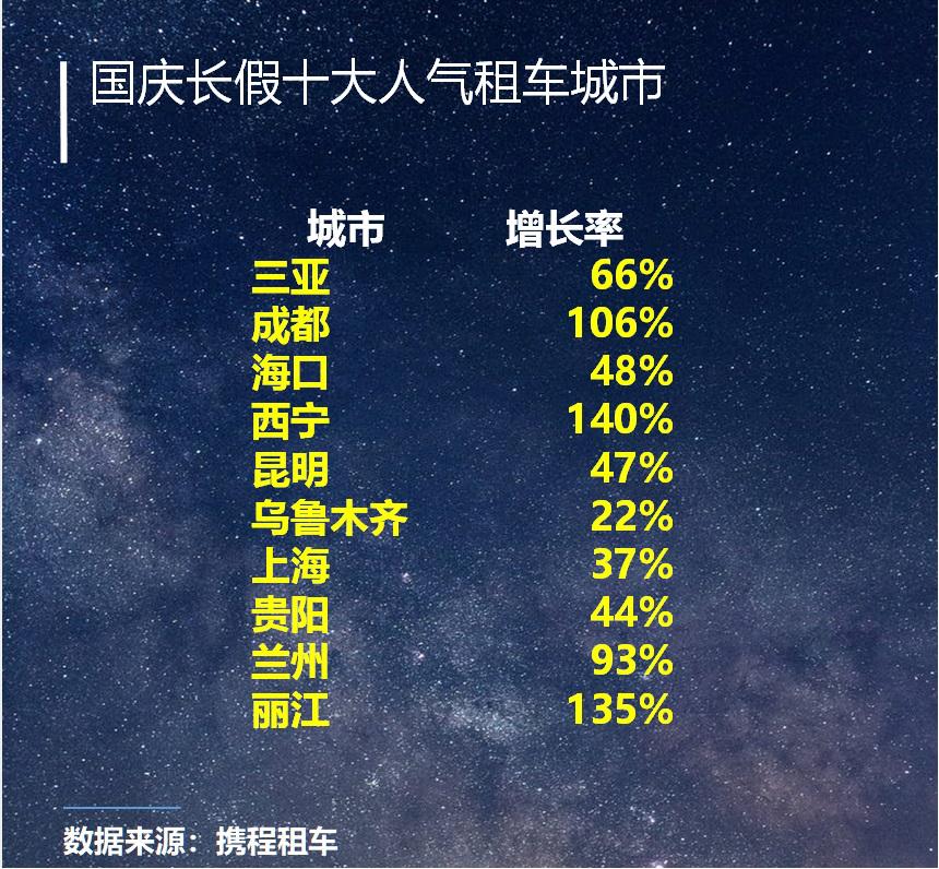 今年国庆假期国内租车旅游哪里更火,哪些目的地的租车量和增长更高?