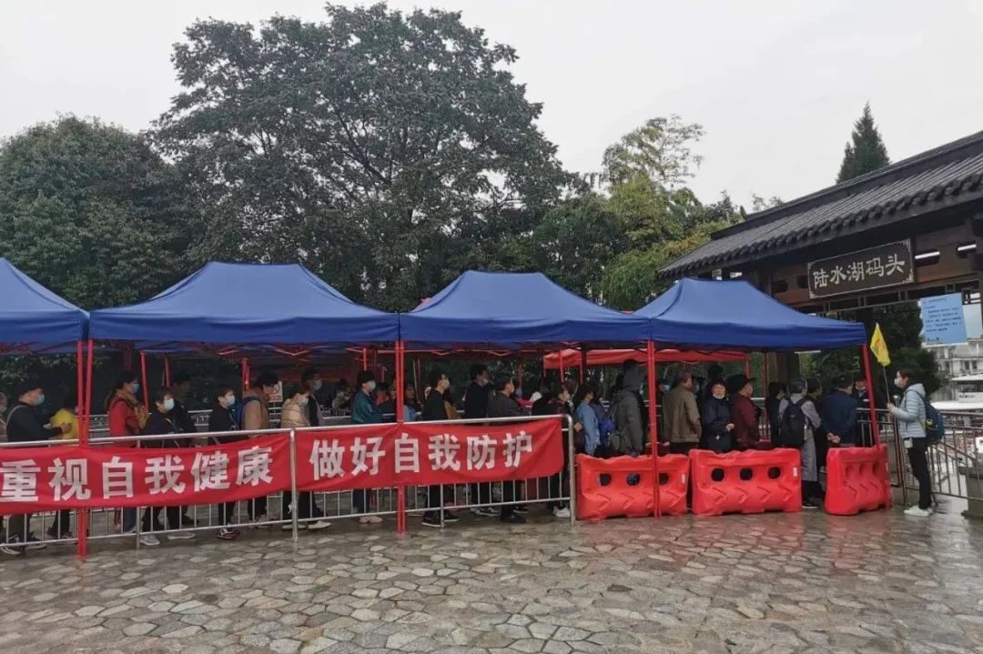 对双节期间的文明旅游、安全出游、免票预约、游玩攻略、文旅活动安排等事项进行广泛宣传,便于游客提早规划假期安排。咸宁市文旅局假日期间根据重点景区预约情况,动态调整景区放票量,尽量满足游客需求。为迎接客流,咸宁市各个景区景点提前按要求做好疫情防控准备,景区拉起栅栏,引导客流有序入园,提醒市民游客在景区内应全程佩戴好口罩,保持适当距离。部分重点景区还为外地游客开辟了入园绿色通道,表达感恩之情。