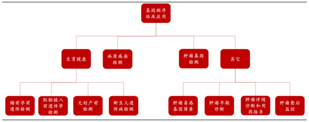 目前,基因测序已经能够通过不同的检测技术来满足多元化的临床需求,主要应用在肿瘤诊断、遗传病检测和产前诊断中。基因检测的结果主要用于临床用药参考与用药指导。