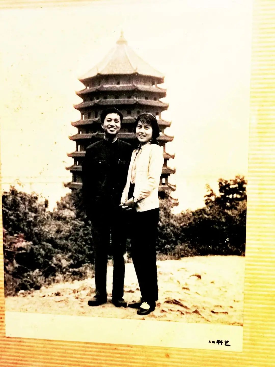上世纪七十年代,楼耀福、殷慧芬夫妇旅行结婚,两人在杭州六和塔前合影,照片中楼耀福穿的就是中山装。