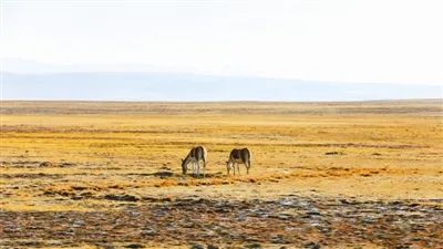 记者在可可西里多次拍摄到藏羚羊、藏野驴、藏原羚等珍稀野生动物,这是正在吃草的藏野驴。宋平摄