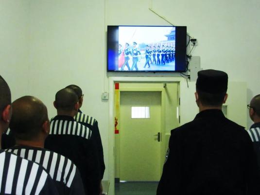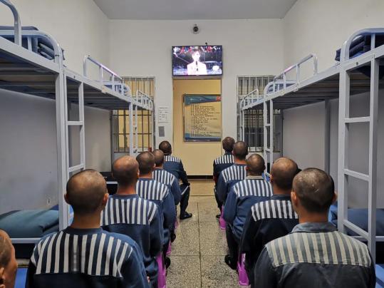 民警组织罪犯在监舍集中收看央视中秋晚会电视直播,以视频画面直观感受祖国强大,进一步弘扬民族自信,激扬家国情怀,为服刑改造注入正能量。