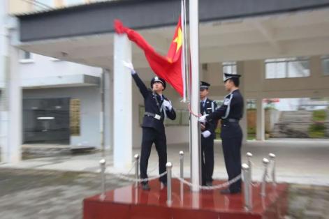 (升旗仪式)10月1日,监狱组织罪犯举行升旗仪式。民警组织罪犯列队面向国旗,高举右手宣誓,在整齐的宣誓声中接受爱国主义教育洗礼,增强国家荣誉感和民族自豪感,不断提升改造内驱力。