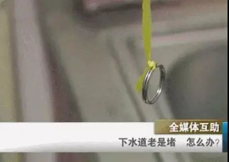 将系有钥匙扣的绳子放进堵塞的下水道里,用力往上一拉,下水道就疏通了,没堵塞的时候把它放在下水道里还可以防止下水道堵塞。