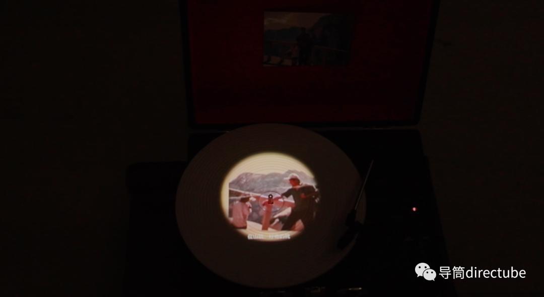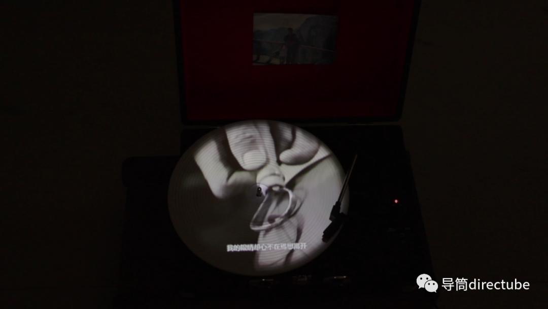 这是一个由一张老照片、一个唱机、一个投影下来的视频组成的摄影装置。需要仔细观看。需要一个私密空间,一个展览的现场。她的那个圆形的视频,也是为了配合旋转唱机的这种现场放映而制作的。网上的一个视频或者几张图片显然太单薄而无法说明这个作品,这样的作品天然地把观众拉回现场,具有别的作品没有的现场性。