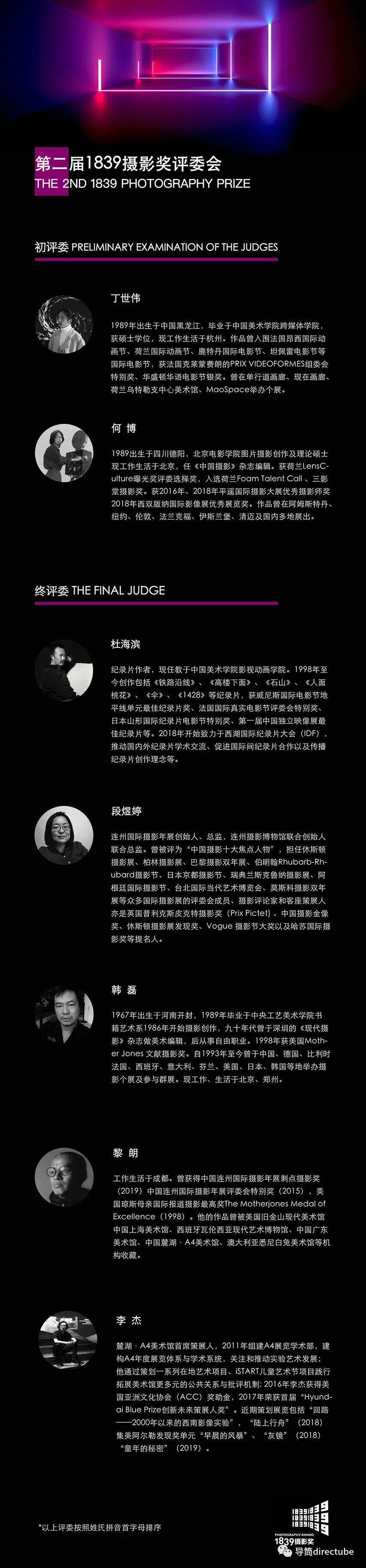 电影每一秒都是二十四格的照片,它的诞生来自于摄影术的发明,从历史发展上看有着密切的关系。甚至许多伟大的导演,阿巴斯、库布里克、维姆文德斯、塔科夫斯基在电影之余,都创作了许多精彩的摄影作品。但是,这毕竟是两种不同的媒介材料,各有各的语言和特点,也各有不同的发展路径。由董钧、海杰发起的1839摄影奖,以摄影术诞生之时为名,既回溯摄影的本体属性,也强调以跨媒介的开放姿态对其延展。第二届1839摄影奖共收到来自近千组投稿,经过纪录片导演杜海滨、策展人段煜婷、艺术家韩磊、艺术家黎朗、策展人李杰五位终评委四轮投票,最终把大奖颁给了一个以电影短片为主的摄影装置,引发了广泛的讨论。如何看待这种语言的跨界呢?
