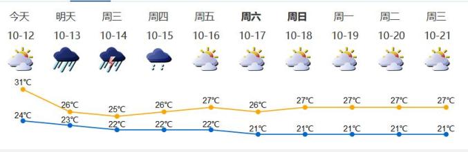 我市多云,天气干燥;气温24-31℃;东北风2-3级;相对湿度60%-90% 。