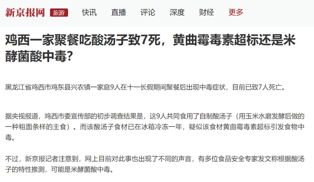 这两天有若干媒体来采访一个有关吃「酸汤子」7 人中毒死亡的问题。